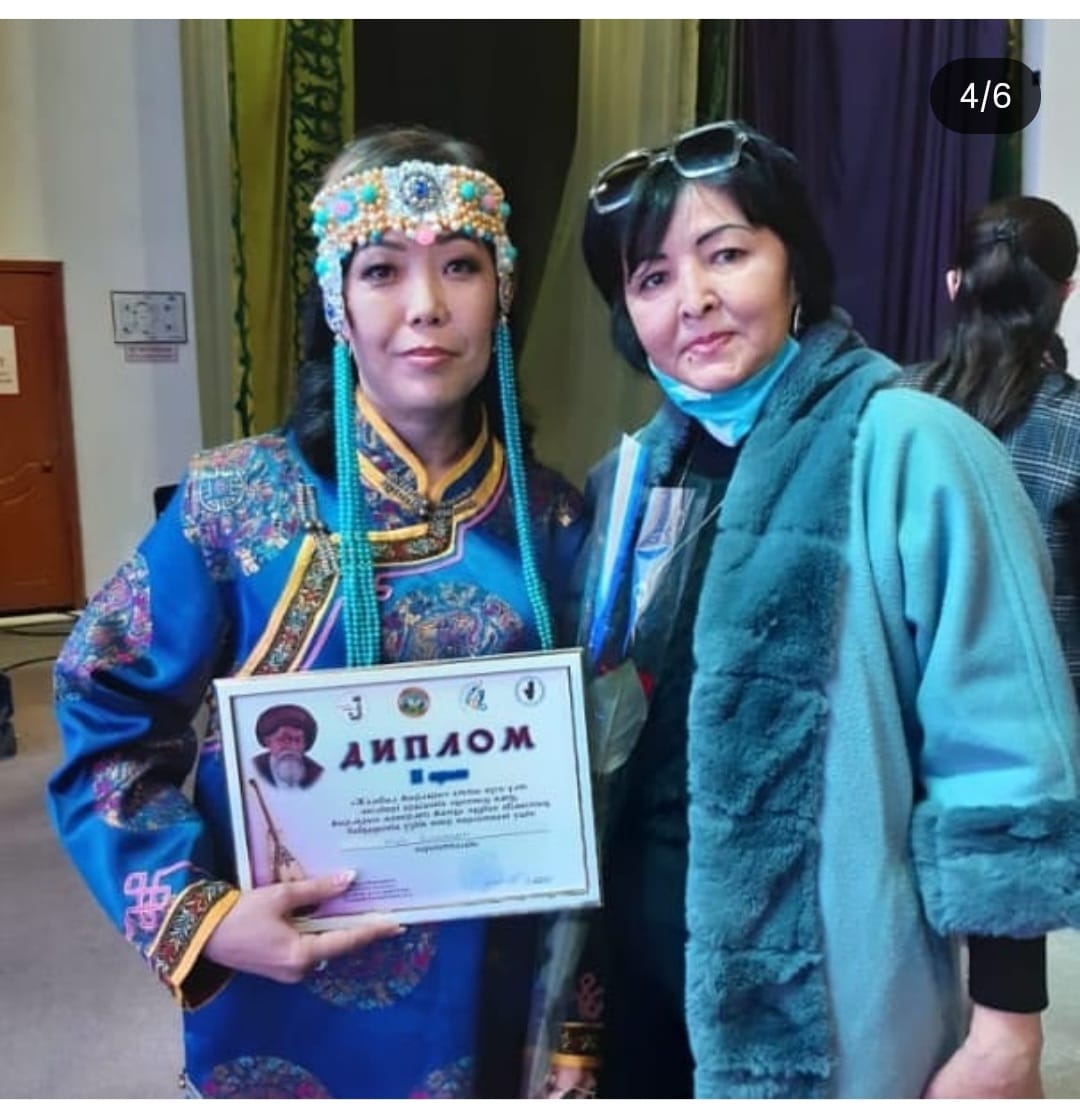 – Бәрі ауданда балабақшада істеп жүргенім кезімнен басталды. Бір мерекеге орай аудан бойынша өнерпаздарды іздеген екен. Бір құрбым екеуміздің ән айтқанымыз бар еді, соны ассамблея қызметкерлері көріп, концертке шақырды. Сонда менің тегіме қызығып, мән-жайды сұрады. Мен өзім жайлы барлығын айтып бердім. Бала кезімнен моңғолша сөйлемесем де әкем әндерін үйреткен. Әкемнің де әншілік қабілеті бар еді. Соны естіген соң моңғолша ән айтуымды өтініп, содан әрі тығыз байланысымыз жалғаса бастады. Осылай танылып кеттім. Содан бері моңғол ұлтының атынан неше түрлі облыстық байқауларға қатысып, жүлдері орындар алып, марапатталып жүрмін.