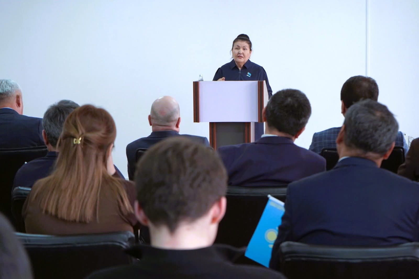 Одан соң, «AMANAT» партиясы Түркістан облыстық филиалы атқарушы хатшысының орынбасары, өңірлік коалиция төрағасының орынбасары Қалыйма Жантөреева сөз сөйледі.