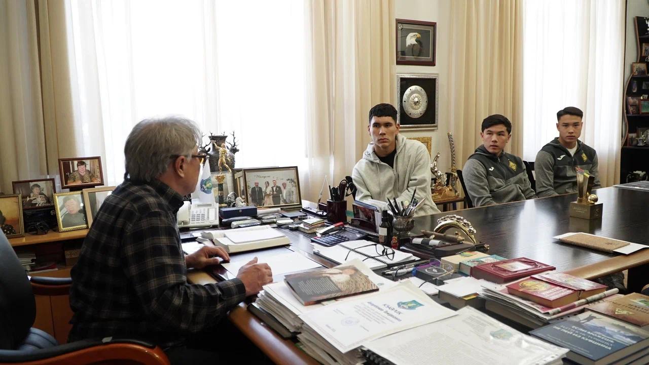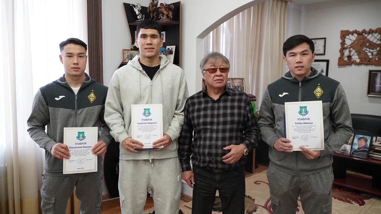 Қазақ спорт және туризм академиясының Президенті Қайрат Закирьянов «Қайрат» футбол клубының қақпашысы Темірлан Анарбековке, жартылай қорғаушы Олжас Байбекке және шабуылшы Мансұр Бірқұрмановқа ректор грантын салтанатты түрде табыстады, деп хабарлайды bairaqmedia.kz