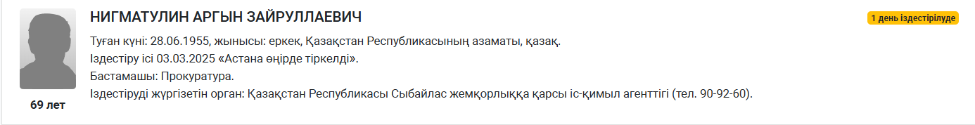 Мәжілістің бұрынғы төрағасы Нұрлан Нығматулиннің ағасы Арғын Нығматулинге іздеу жарияланды, деп хабарлайды Bairaqmedia.kz.
