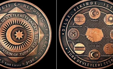 Түрік Мемлекеттері Ұйымы үшін арнайы әзірленген естелік монетаны Бішкекте өткен ТМТ 11-ші саммиті барысында президент Режеп Тайып Ердоған мемлекет басшыларына сыйға тартты.